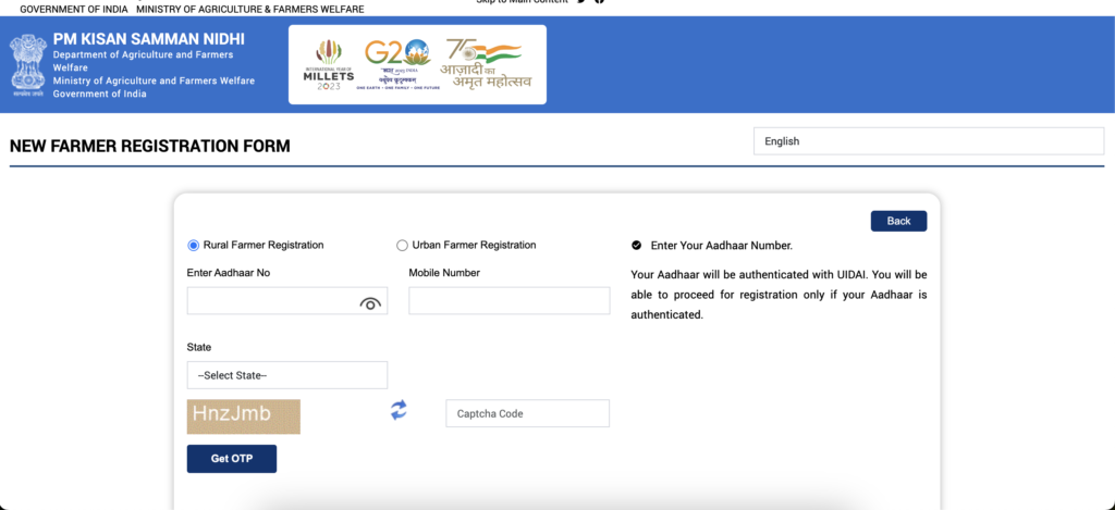 - पीएम किसान की आधिकारिक वेबसाइट पर जाएं और होमपेज पर “New Farmer Registration” विकल्प पर क्लिक करें।