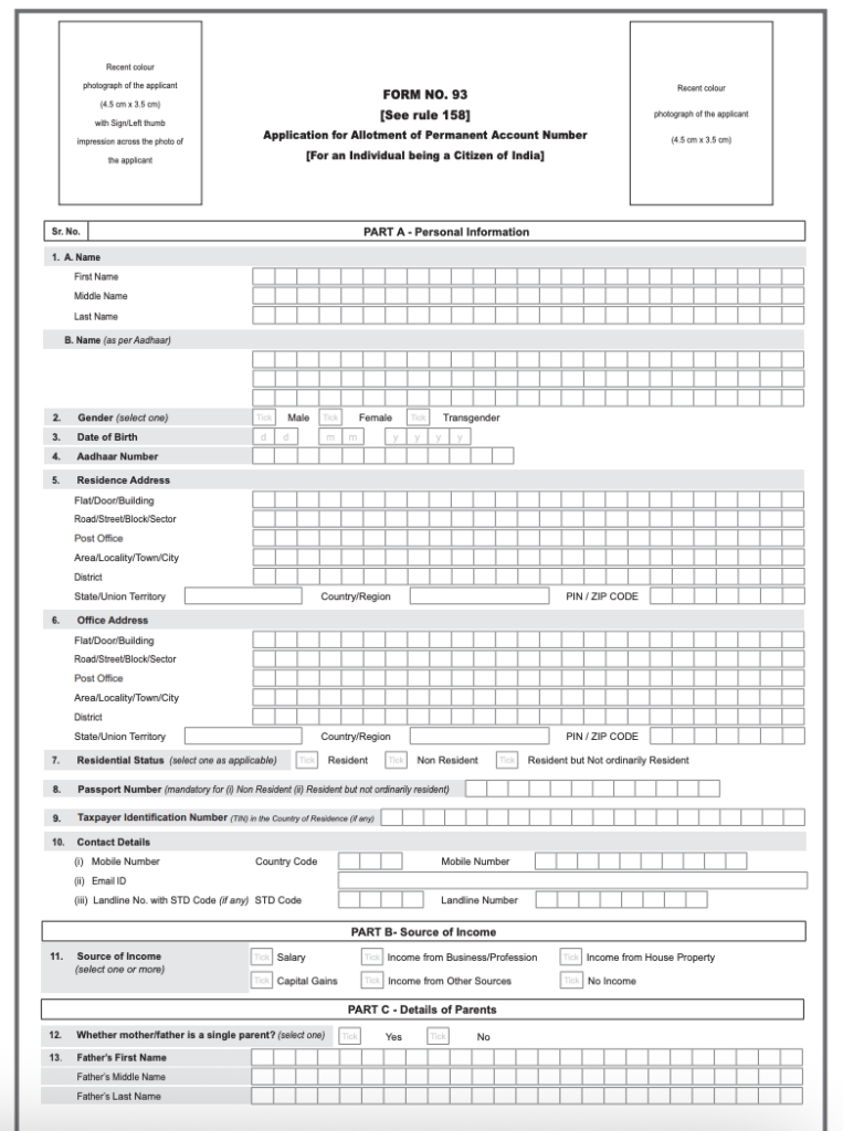 PAN Form 93 is the new application form for allotment of Permanent Account Number (PAN) for Indian citizens introduced from April 2026.