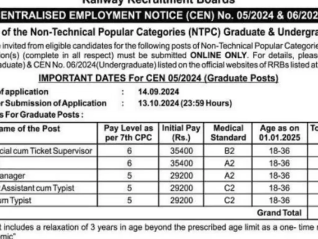 RRB NTPC भर्ती 2024 में आवेदन प्रक्रिया और महत्वपूर्ण तिथियाँ